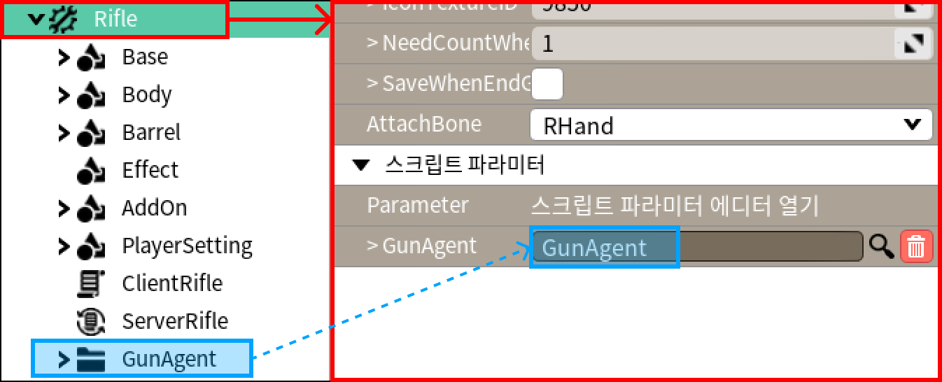 * GunAgent : 각각의 총 토이가 가진 Client/Server 스크립트에서, 총 종류에 맞게 참조하는 모듈이에요.