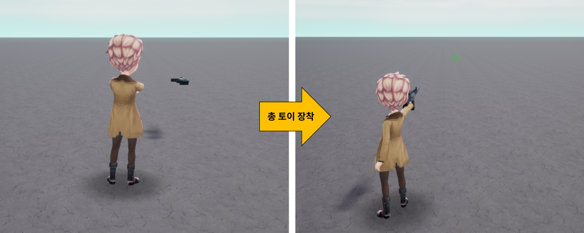 그래서 카메라 뷰를 새롭게 설정한 월드에서는, 총을 장착했을 때 원하는 시점이 나오지 않을 수 있어요.